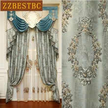 .Pictures of Blue top European royal luxury 4D jacquard blackout curtains for living room window curtain bedroom Elegant hotel drape
