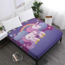 .Gallery of Princess Unicorn Bed Sheet Kids Cartoon Fitted Sheet Colorful Rainbow Print Bedclothes Deep Pocket Mattress Cover Home Decor D40