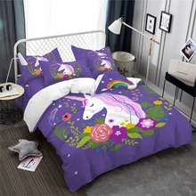 Price Description of Purple Unicorn Bedding Set Princess Cartoon Duvet Cover Set Plant Flowers Print Bedding King Queen Bedclothes Pillowcase D40