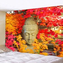 Offer Description of Red And Yellow Leaves Buddha Statue Polyester Wall Hanging Tapestry Mandala Bohemia 5 Sizes Travel Sleeping Pad Polyester Fabric
