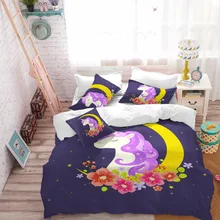 .Pictures of Princess Unicorn Bedding Set Cartoon Duvet Cover Set Flowers Moon Print Purple Bed Cover Pillowcase Girls Festival Gift D30