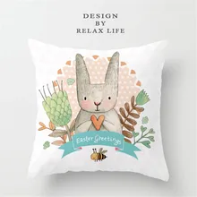 .Pictures of Easter Rabbit Print Pillow Case Polyester Sofa Car Cushion Cover Easter Decoration Home Decorative Pillowcase #007